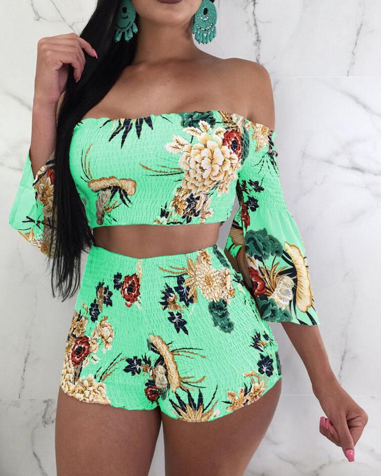 Fashion Printed One-Shoulder Two-Piece Set