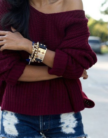 Material: Knitting Colour: Wine Red Size: One Size (Standard Size) Size Chart: (CM) Bust 90, Sleeve 58, Length 38