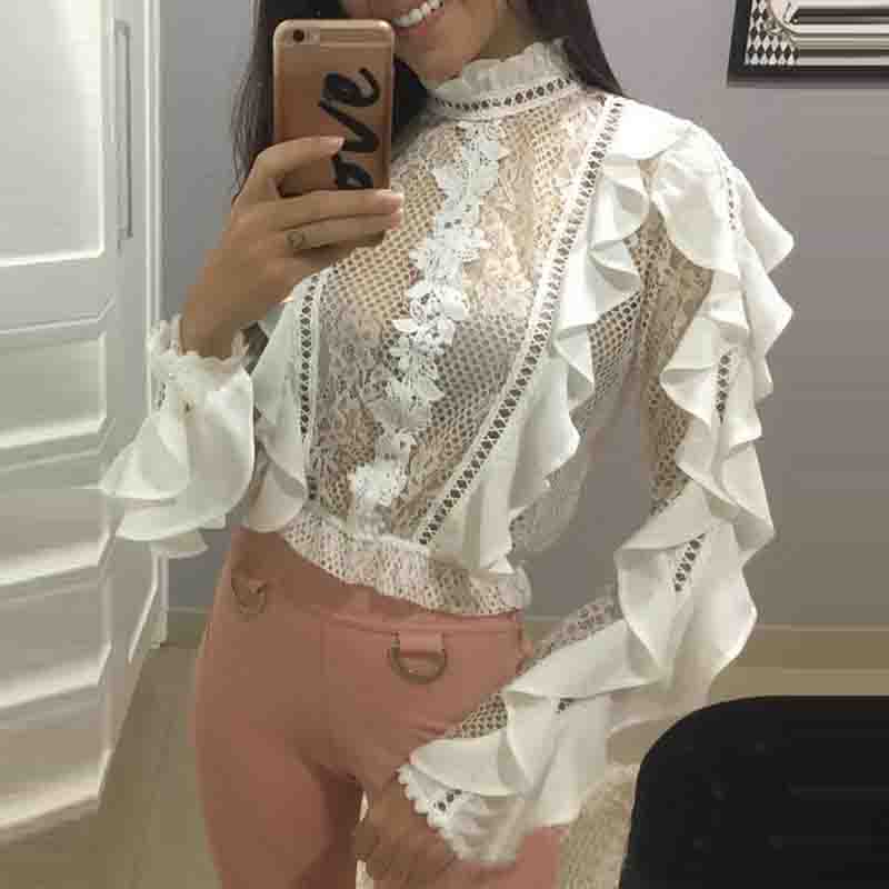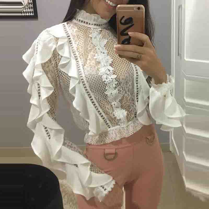 Material: Lace Gender: Women Item Type:Tops Sleeve Length:Long Sleeve Color: White Size: S,M,L,XL