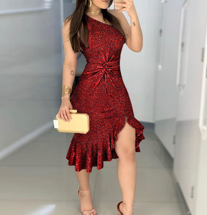 Material: Polyester Gender: Women Item Type:Dress Sleeve Length: Sleeveless Color: Red, Green Size: S,M,L,XL