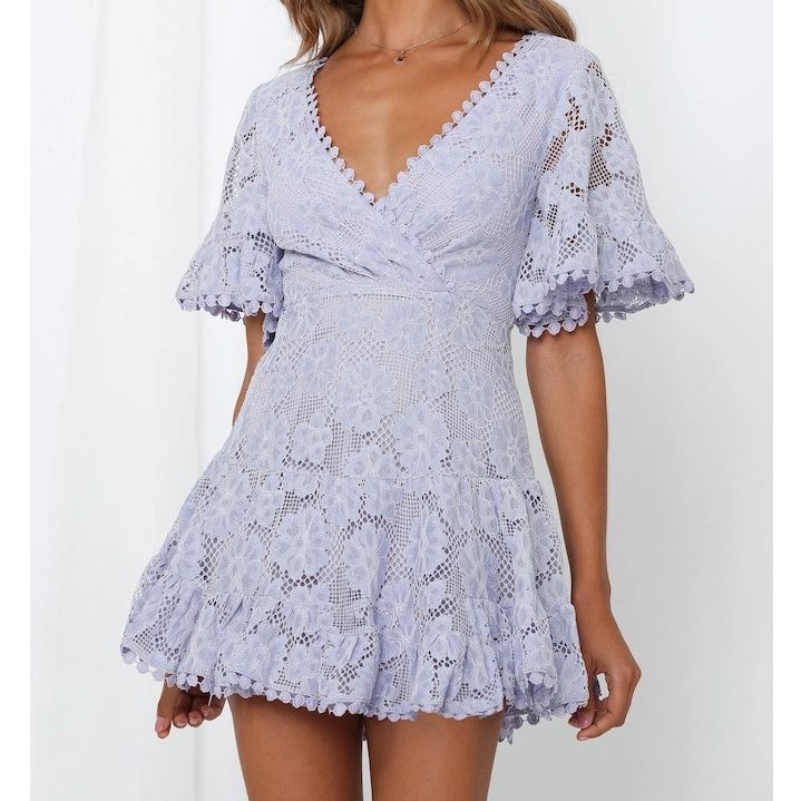 Material: Lace Gender: Women Item Type:Dress Color: White, Pink, Purple Size: S, M, L, XL