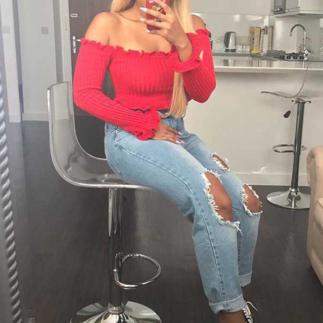 Long Sleeve One Word Collar Tube Top Women'S Top