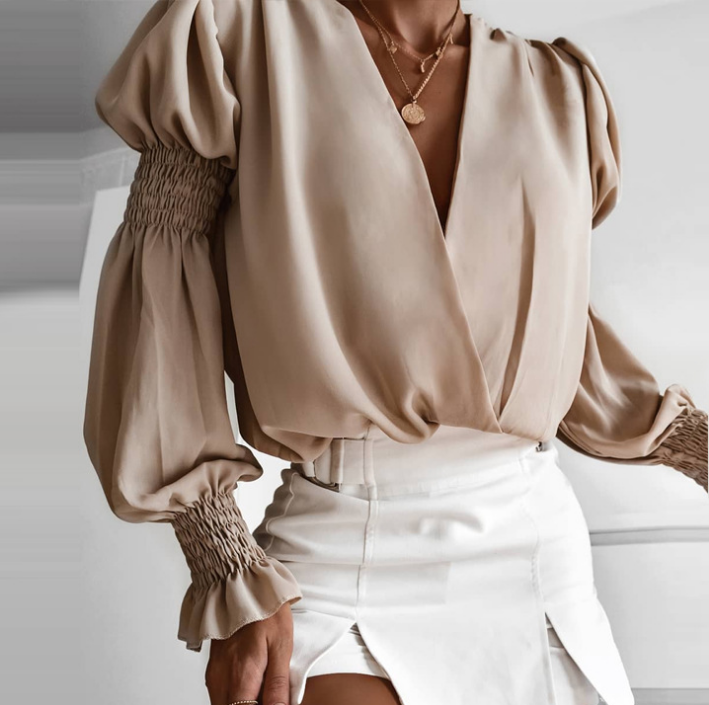 Material: Polyester Gender: Women Item Type:Tops Sleeve Length:Long Sleeve Color: Apricot Size: S,M,L,XL