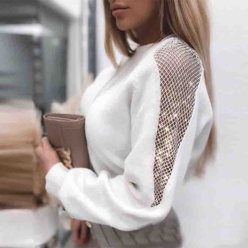 Material: Polyester Gender: Women Item Type:Tops Sleeve Length:Long Sleeve Color: White Size: S,M,L,XL