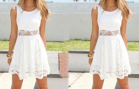 Gender: Women Item Type:Dress Sleeve Length: Sleeveless Fabric: Lace Color: White Size: S, M, L