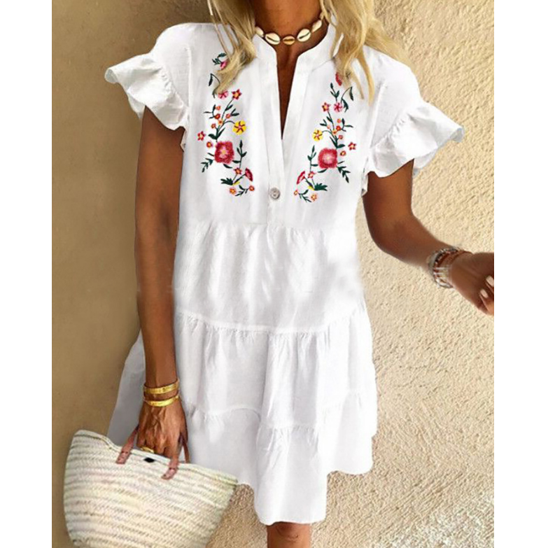 Item Type:Dress Sleeve Length:Short Sleeve Material: Polyester Gender: Women Color: White Size: S,M,L,XL,XXL