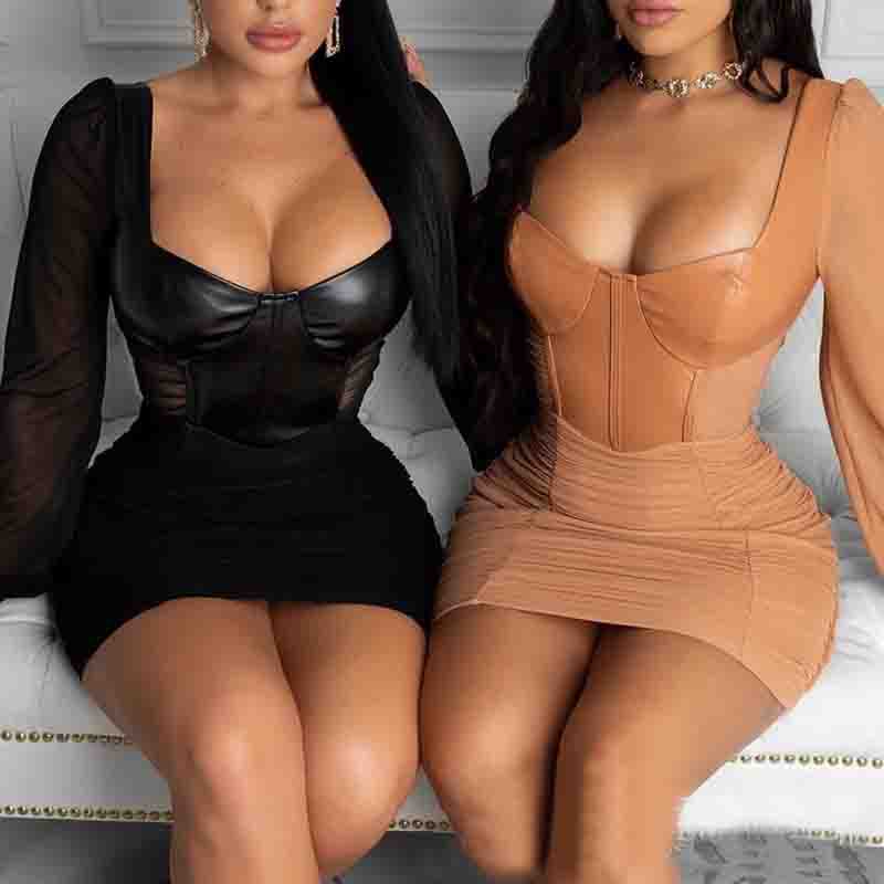 Item Type:Dress Sleeve Length:Long Sleeve Material: Polyester Gender: Women Color: Brown, Black Size: S,M,L,XL