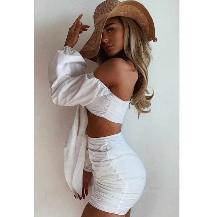 Sexy Wrapped Chest Long Sleeve Vest Two-piece Set