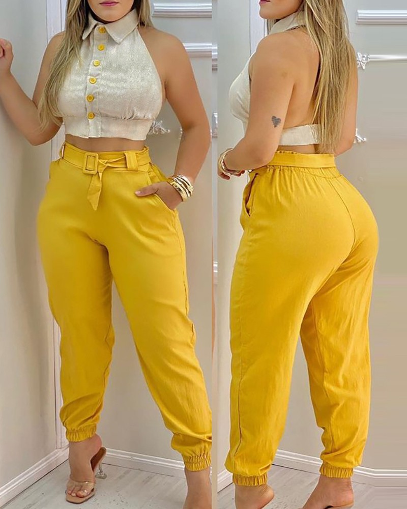 Material: Cotton Gender: Women Item Type: Two-Piece Set Color: Yellow Size: S,M,L,XL