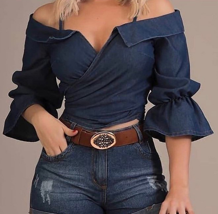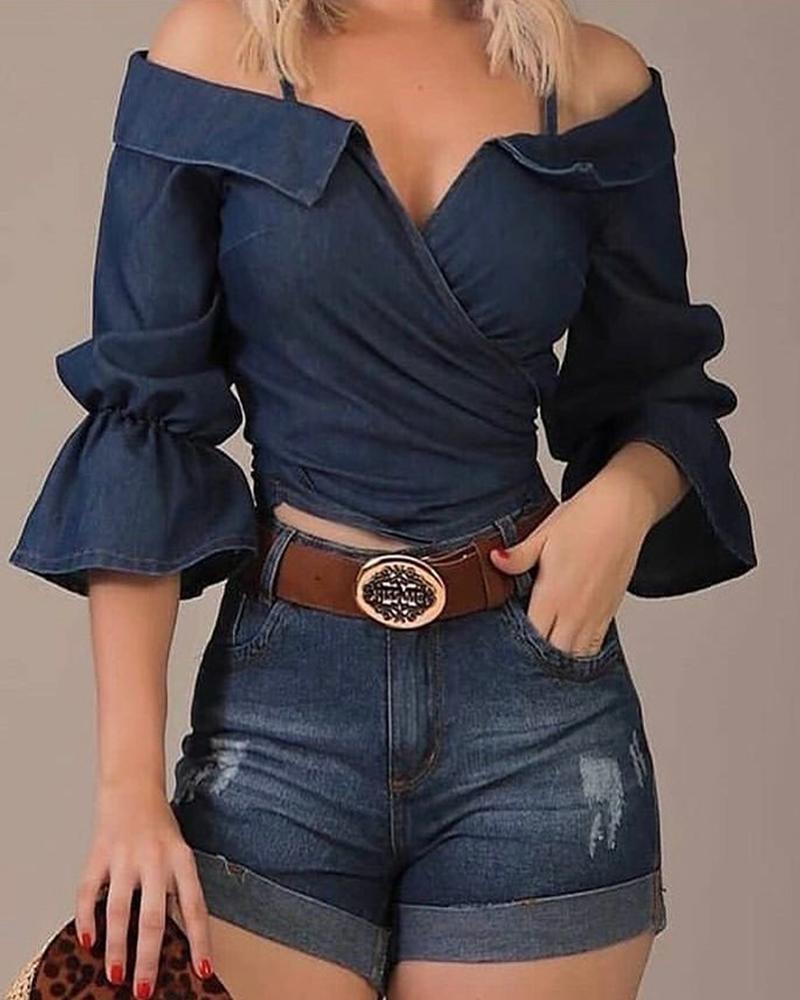 Fashion Women'S V-Neck Off-Shoulder T-Shirt Top