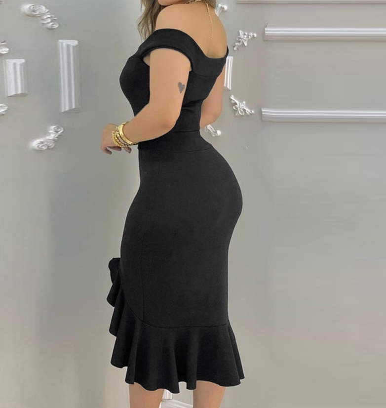 Sexy One-Shoulder V-Neck Ruffled Skinny Dress