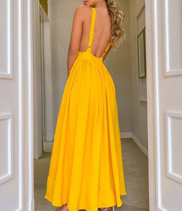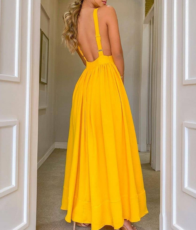 Material: Polyester Gender: Women Item Type:Dress Sleeve Length: Sleeveless Color: Yellow Size: S, M, L, XL
