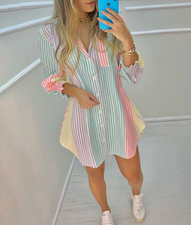Sexy Fashion Long-Sleeved Cardigan Printed Shirt Dress