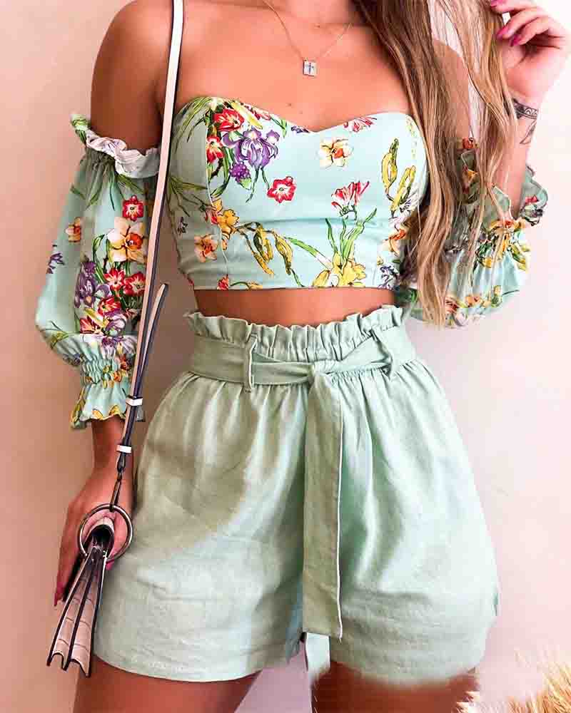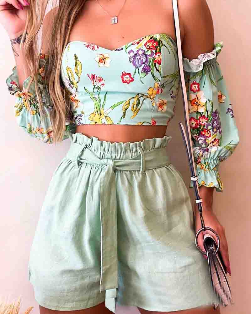 Women'S One-Shoulder Print Two-Piece Set