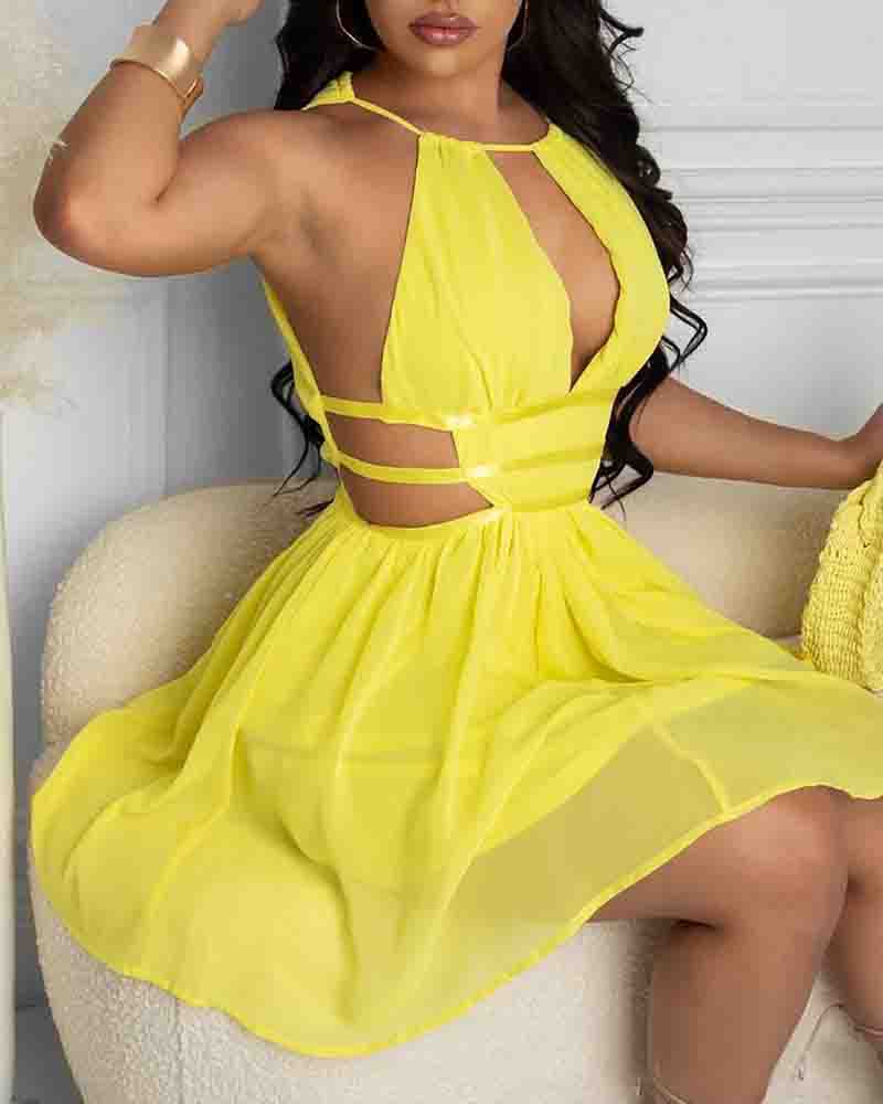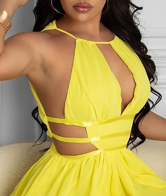 Material: Polyester Gender: Women Item Type: Dress Sleeve Length: Sleeveless Color: Yellow Size: S,M,L,XL