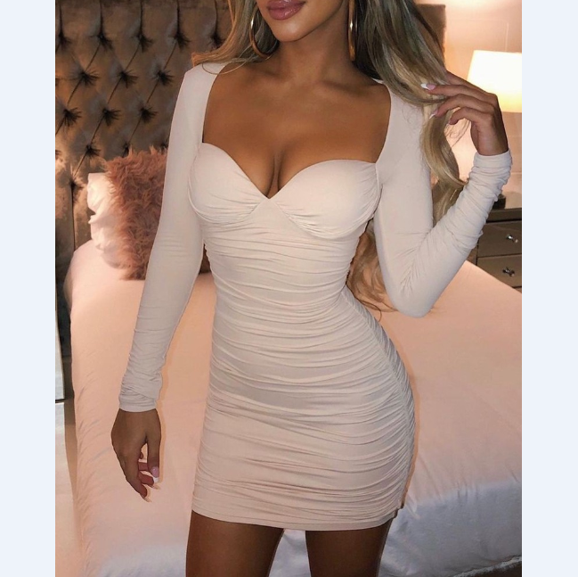 Material: Polyester Gender: Women Item Type: Dress Color: Beige Size: S, M, L, XL