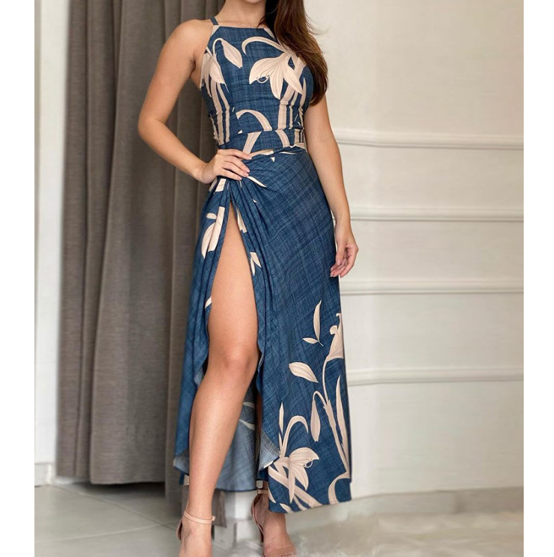 Casual Printed Sleeveless Sling Split Two-Piece Set
