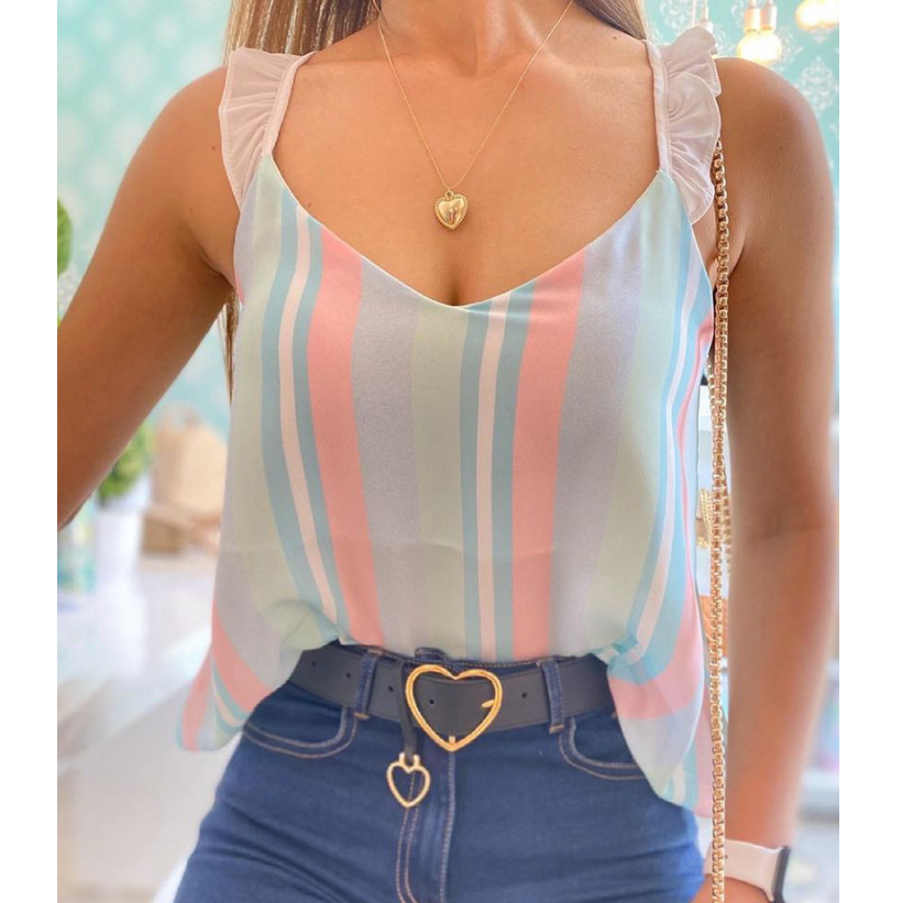 Sexy Striped Print Chiffon Vest Shirt