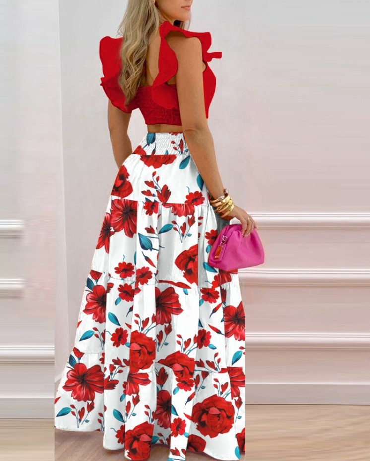 Fashion Sexy Sleeveless Two-piece Print Suit