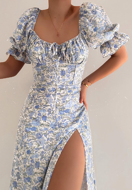 Fashion Sexy Short Sleeve Printed Slit Dress