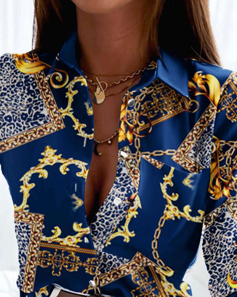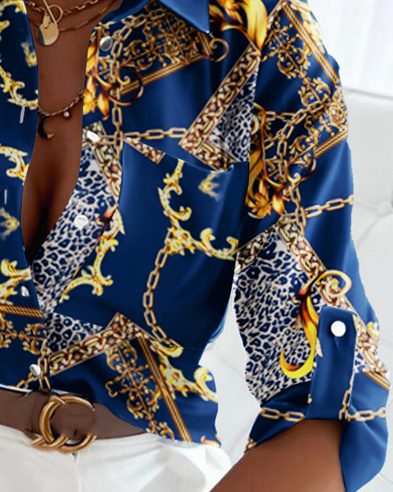 Elegant Vintage Chain Printed Long Sleeve Shirt