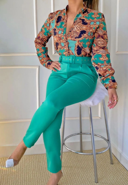 Slim Women Fashion Print Two Piece Set