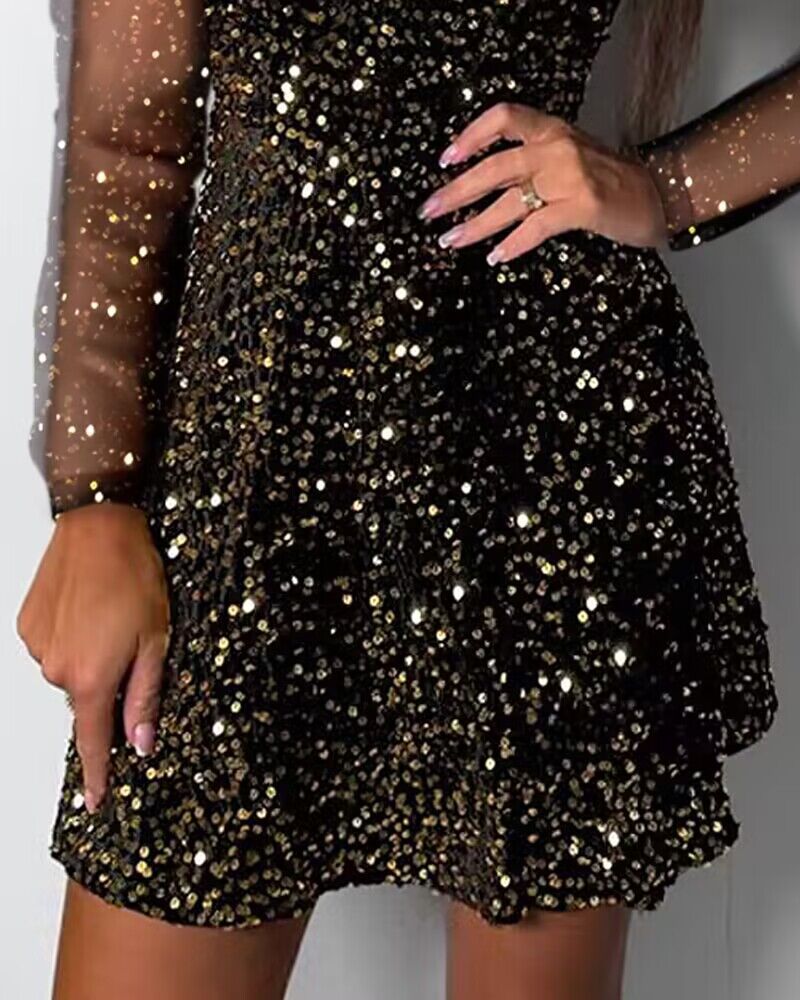 Sexy V-Neck Sequin Long Sleeved Dress