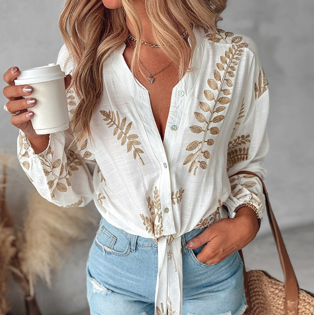 Casual Embroidered Leaf Shirt Top