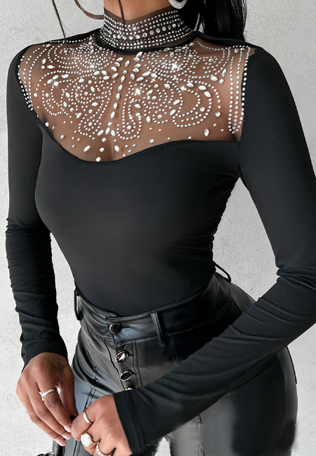 Temperament Chain Pit Stripe Long sleeved Top