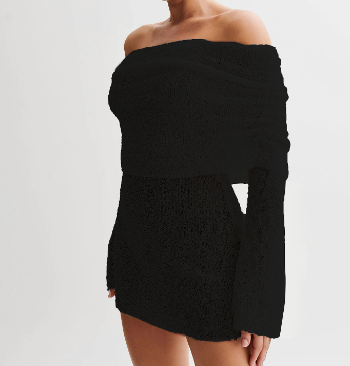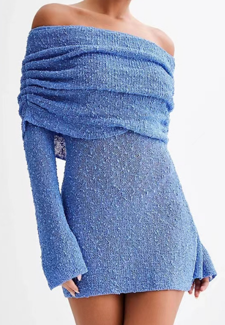 Women'S Sexy Solid Color Long Sleeved One Shoulder Dress