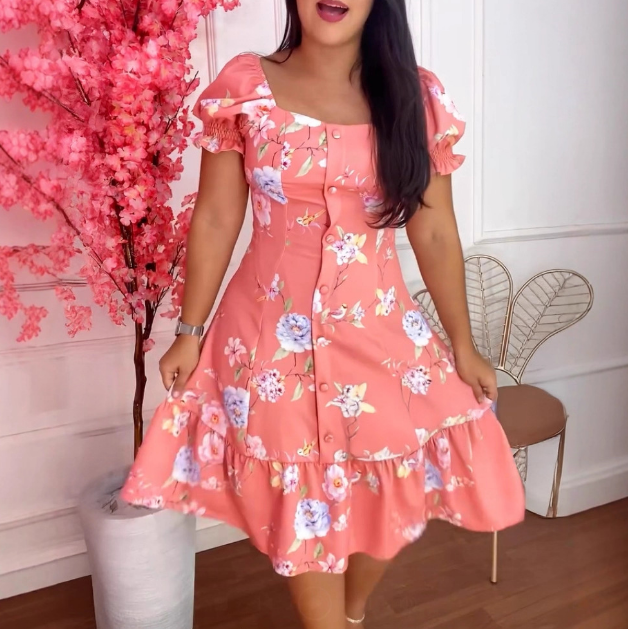 Temperament Floral Print Breasted Patchwork Dress